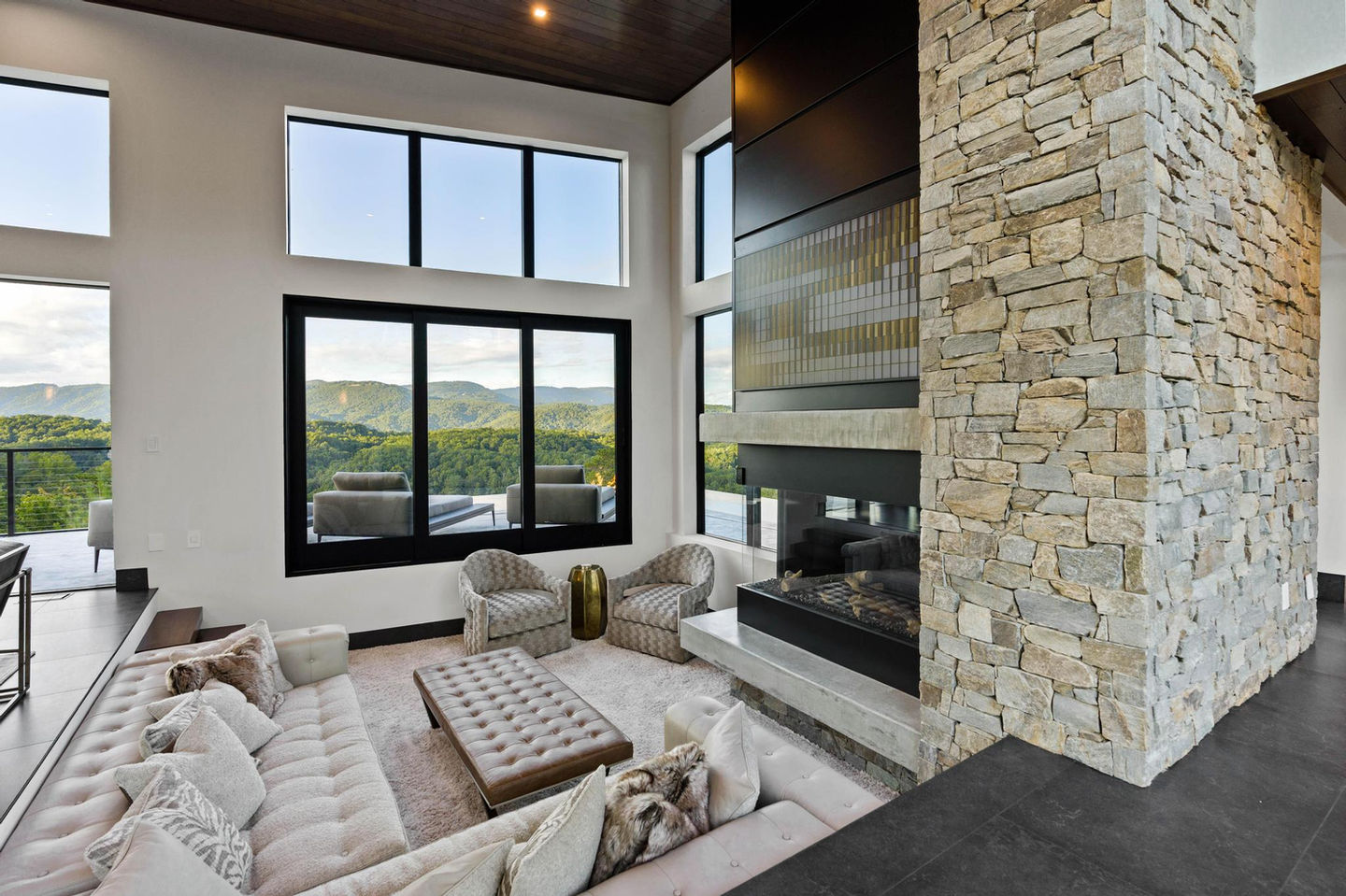 A compilation of modern interior spaces featuring large windows, elegant lighting, and scenic views, creating a sense of serenity and luxury. Every detail of this home reflects the high-touch, tailored experience we provide throughout the building process.